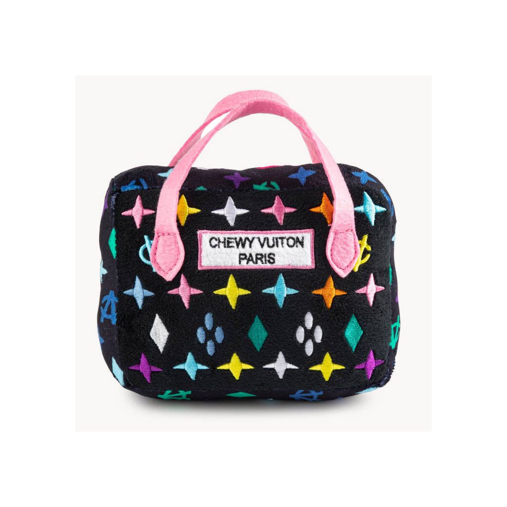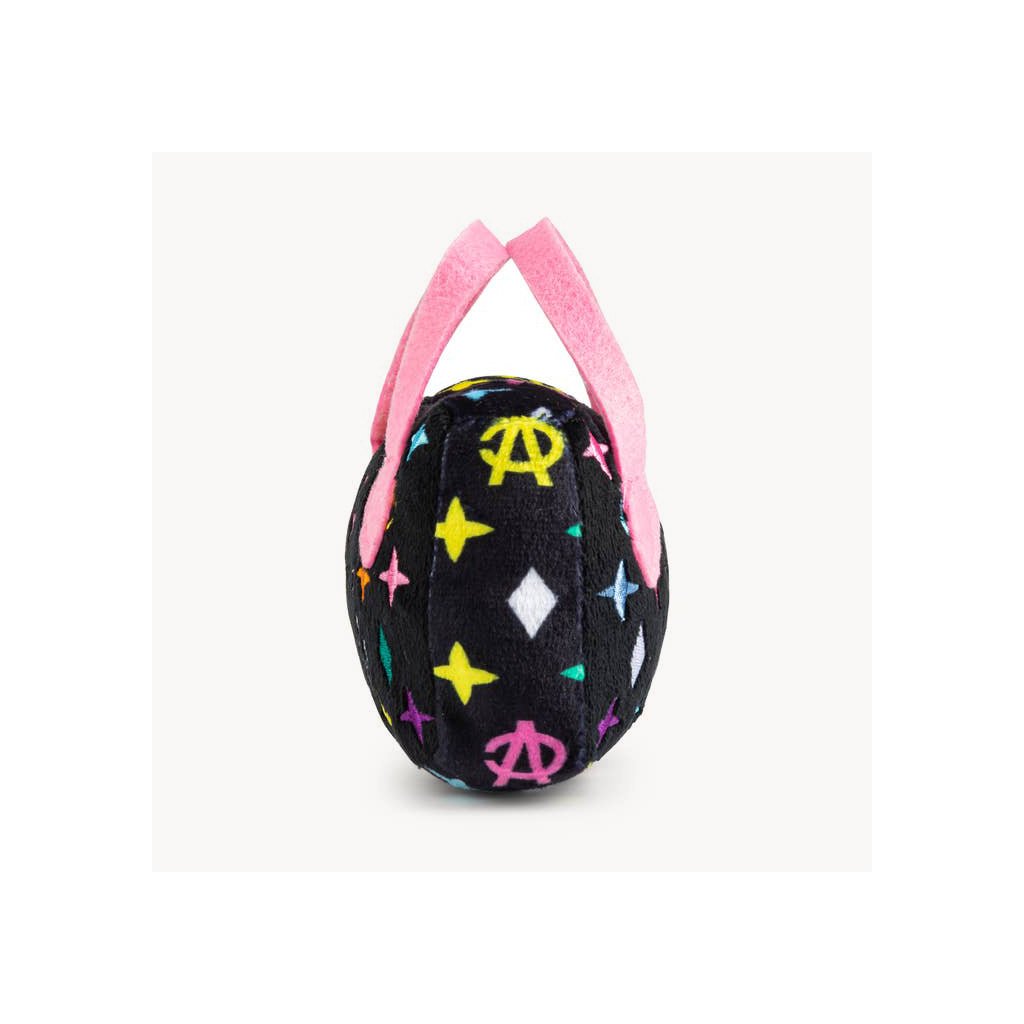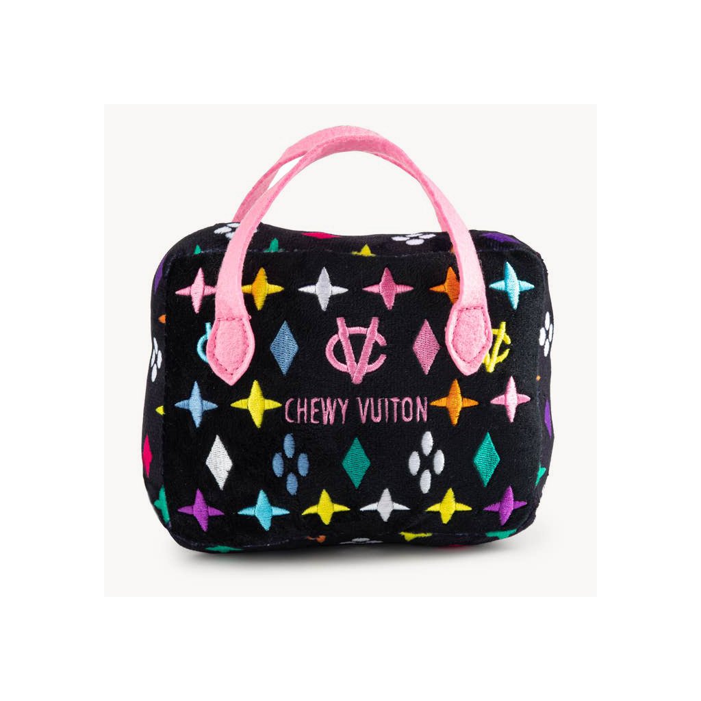 Plyšová hračka Black Monogram Chewy Vuiton Handbag je stelesnením štýlu a zábavy – čierny monogramový dizajn pripomína ikonické módne kúsky z Paríža a ukrýva pískatko, ktoré psy milujú. Ideálna ako vtipný darček aj štýlový doplnok do interiéru.