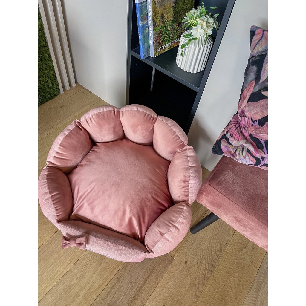 Pelech BAHAMAS pre psov a mačky je ideálnym miestom na relax v exotickom štýle. Vyrobený z materiálu jemného na dotyk s vnútrom podobnému zamatu sa hodí do každého interiéru. Vnútorný materiál pôsobí luxusne, s elegantnou výšivkou a odnímateľnou mašľou, ktorú si môžete prispôsobiť podľa nálady.