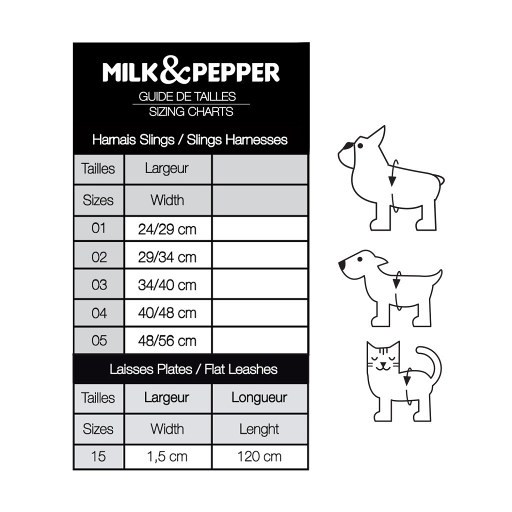 Milk&Pepper je francúzska značka luxusných doplnkov pre psov, ktorá spája eleganciu a originalitu. Každú sezónu prináša trendy kolekcie s jemným štýlom "Milk" alebo rockovým nádychom "Pepper", inšpirované svetom módy a dizajnu. So špeciálnymi kolekciami pre malé plemená, bulldogy a mopslíky kombinuje štýl a kvalitu.