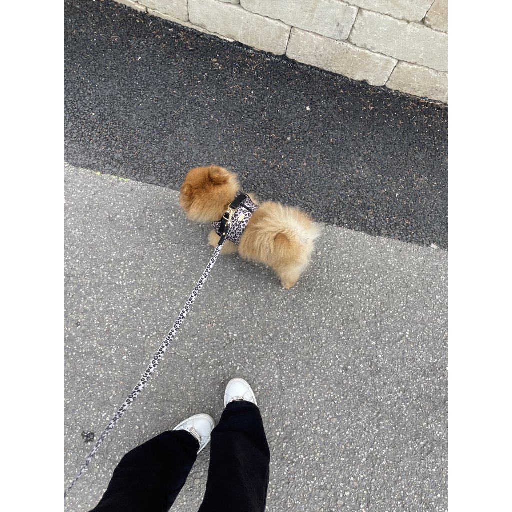 Kenya vodítko je štýlové a funkčné zároveň. Leopardí vzor v odtieni taupe v kombinácii s čiernou zrnkovou imitáciou kože a zlatými detailmi vytvára výnimočný dizajn. Ideálne pre módnych psíkov, ktorí chcú zažiariť na každej prechádzke.